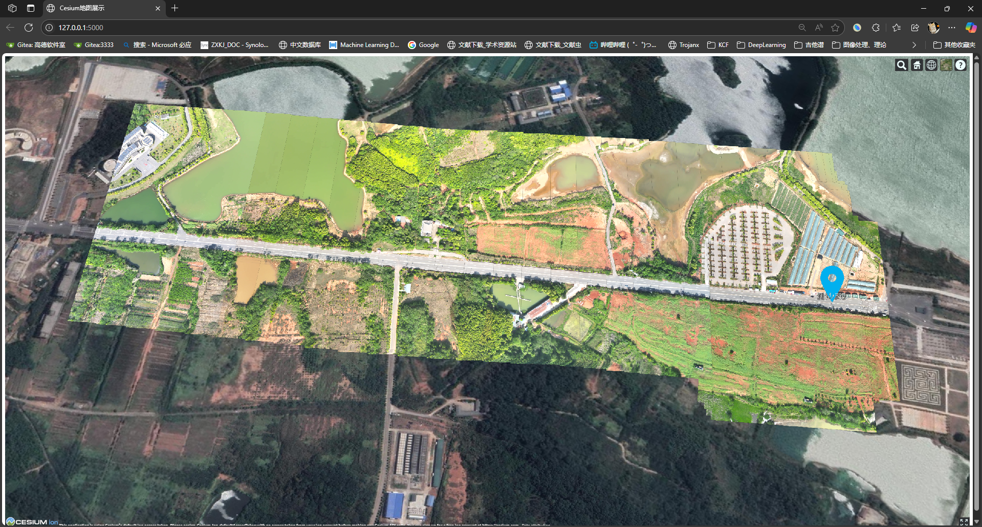 谷歌瓦片按照{Z}-{X}-{Y}.png形式进行命名,能够被gis前端正确显示。下图是cesiumjs的可视化效果。 因此整个执行流程可以概括为实时显示基于kml的帧,并周期性的或者触发式的读取瓦片覆盖显示。